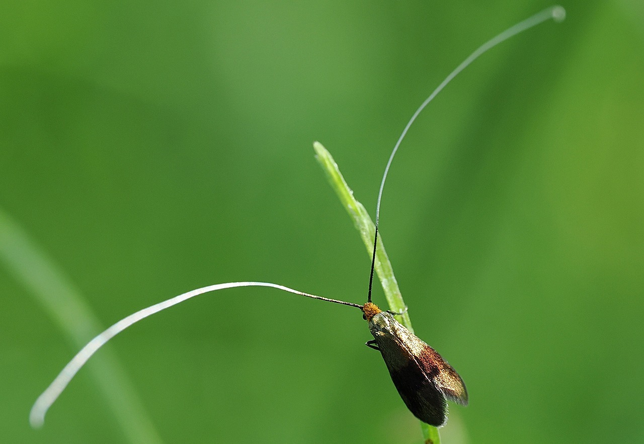 この蛾の飛ぶ様子がとても面白く、上がったり下がったりしながら進んでいくので目立つ二本の触覚だけががひらひらと動いて見えるのです。