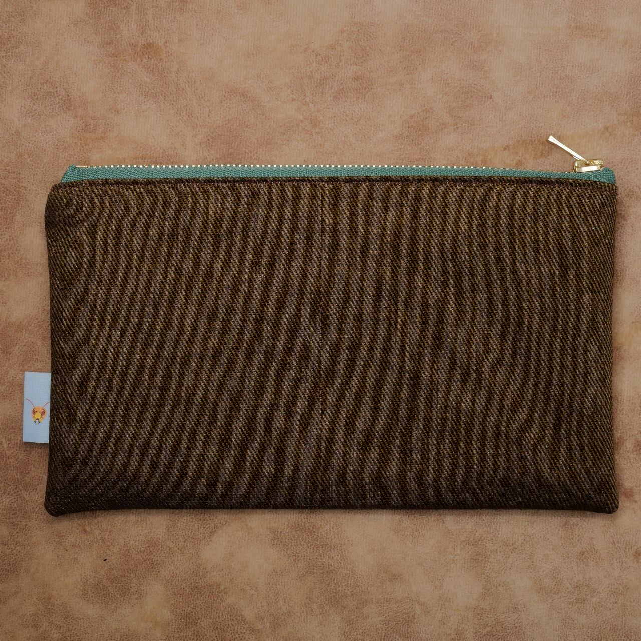 デニム地にキアシナガバチの刺繍を施した薄型のシンプルなポーチです。